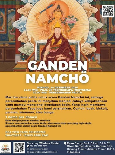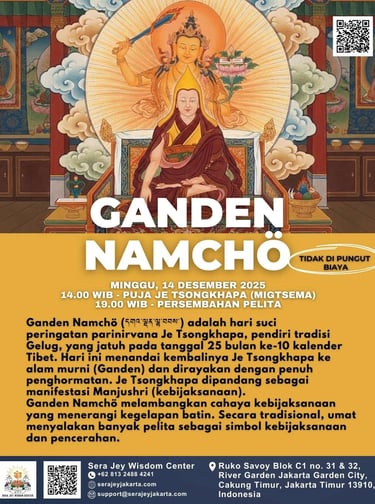 December 14, 2025; 2:00pm (14:00 WIB) - Je Tsongkhapa Puja (Migtsema)